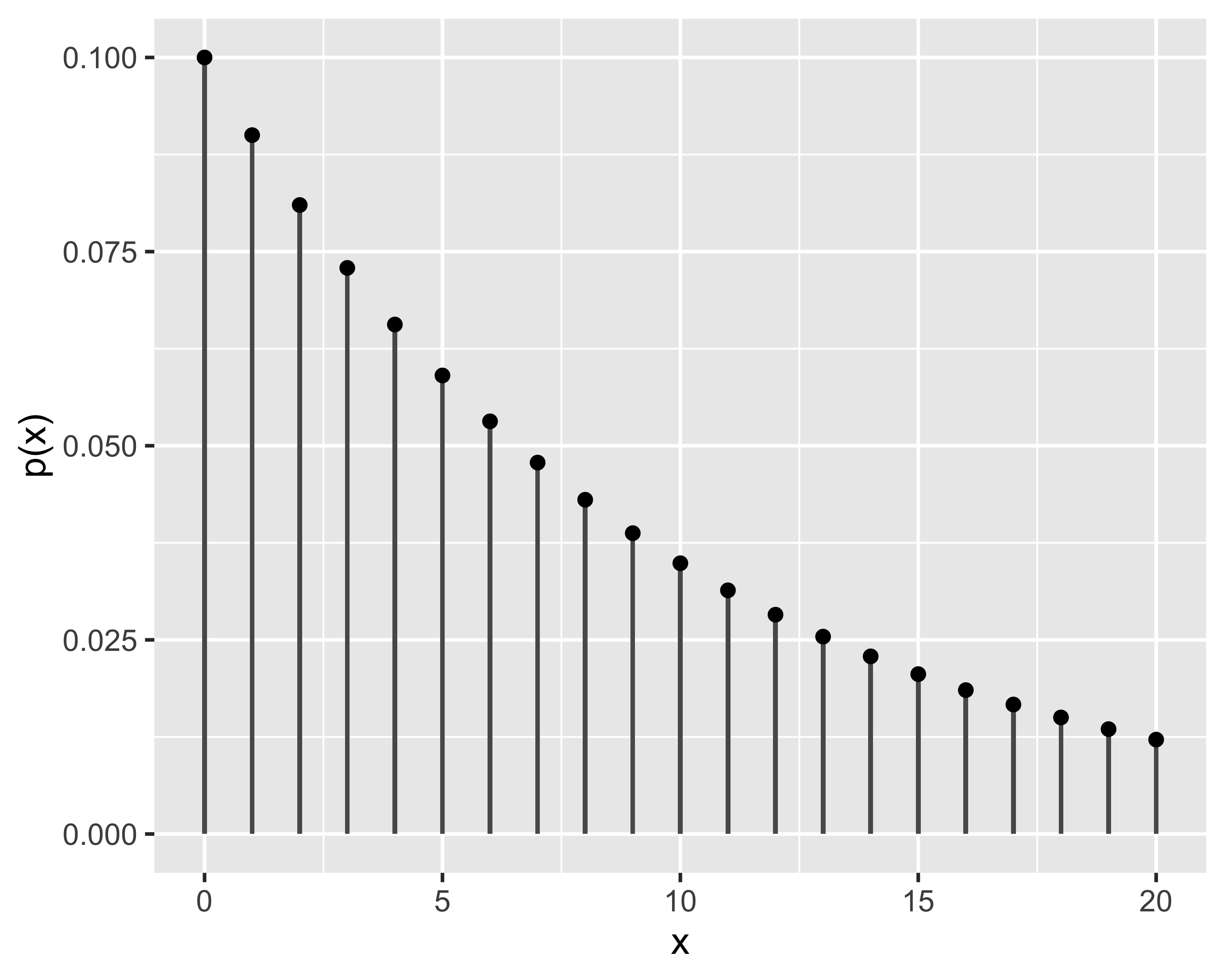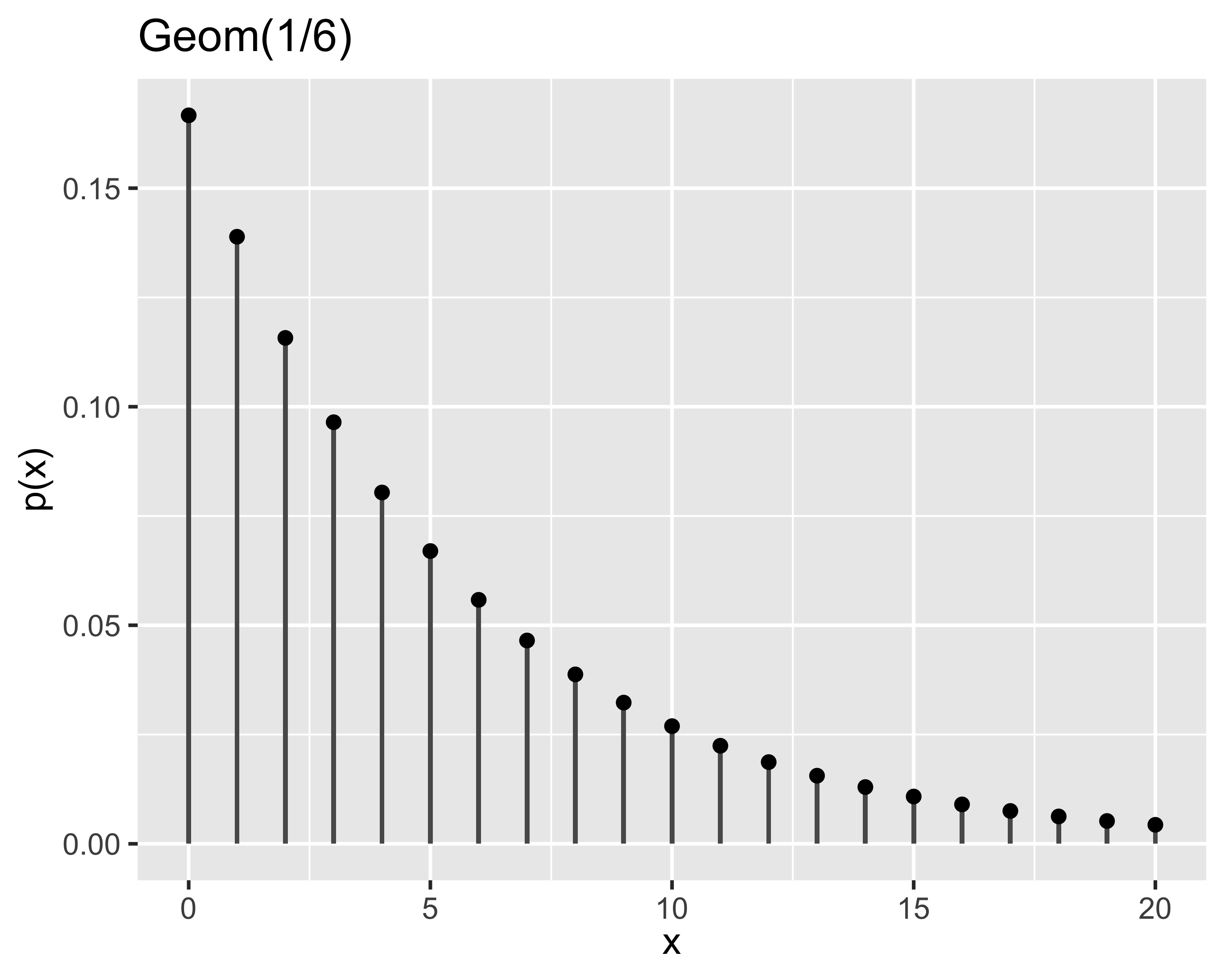 È la distribuzione di probabilità di ottenere in un processo di Bernoulli un successo dopo \(x \in \mathbb{N}^+\) fallimenti
