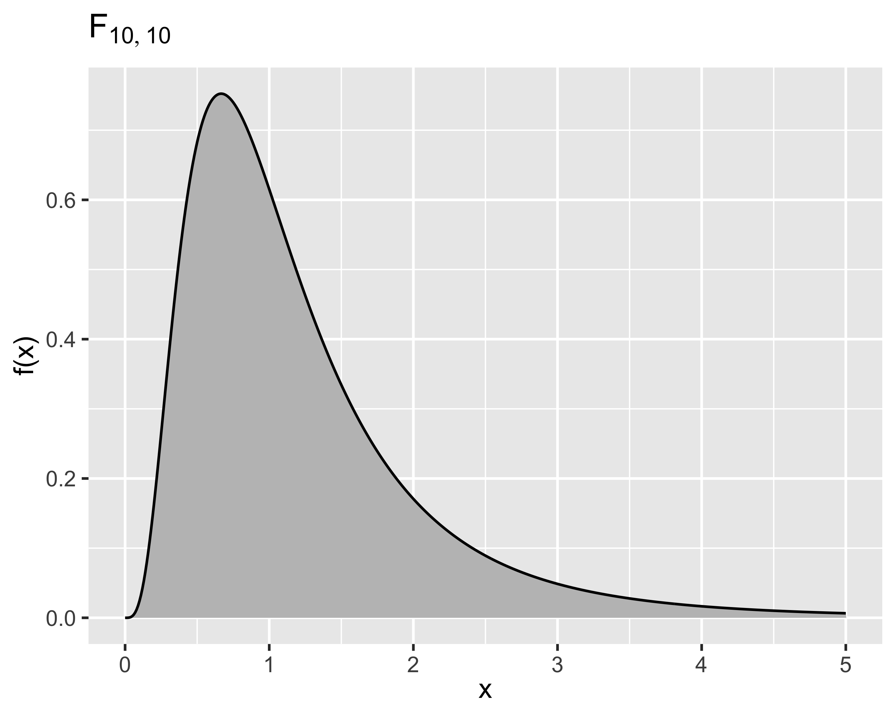 Si dice che \(x\sim\mathrm{F}_{u,v}\) oppure \(x\sim\mathcal{F}_{u,v}\) quando la PDF è: \[ f(x)=\frac{\Gamma\left(\frac{u+v}{2}\right)\left(\frac{u}{v}\right)^{u/2}x^{(u/2)-1}}{\Gamma\left( \frac{u}{2} \right)\Gamma\left( \frac{v}{2} \right) \left(\frac{u}{v}x+1\right)^{(u+v)/2}} \]
