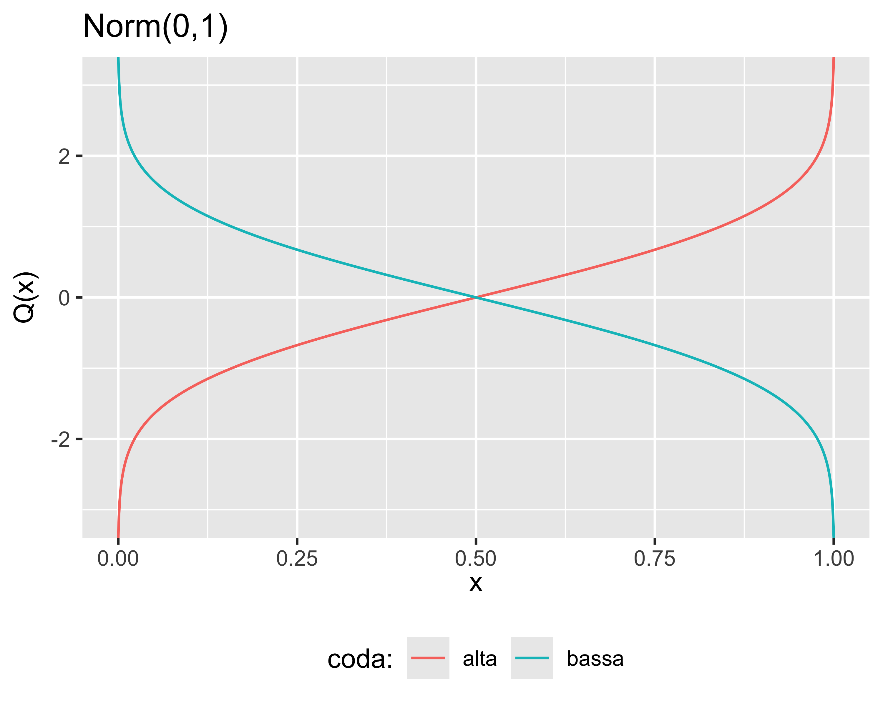 La diagonale sul grafico passa per i due punti del primo e terzo quartile