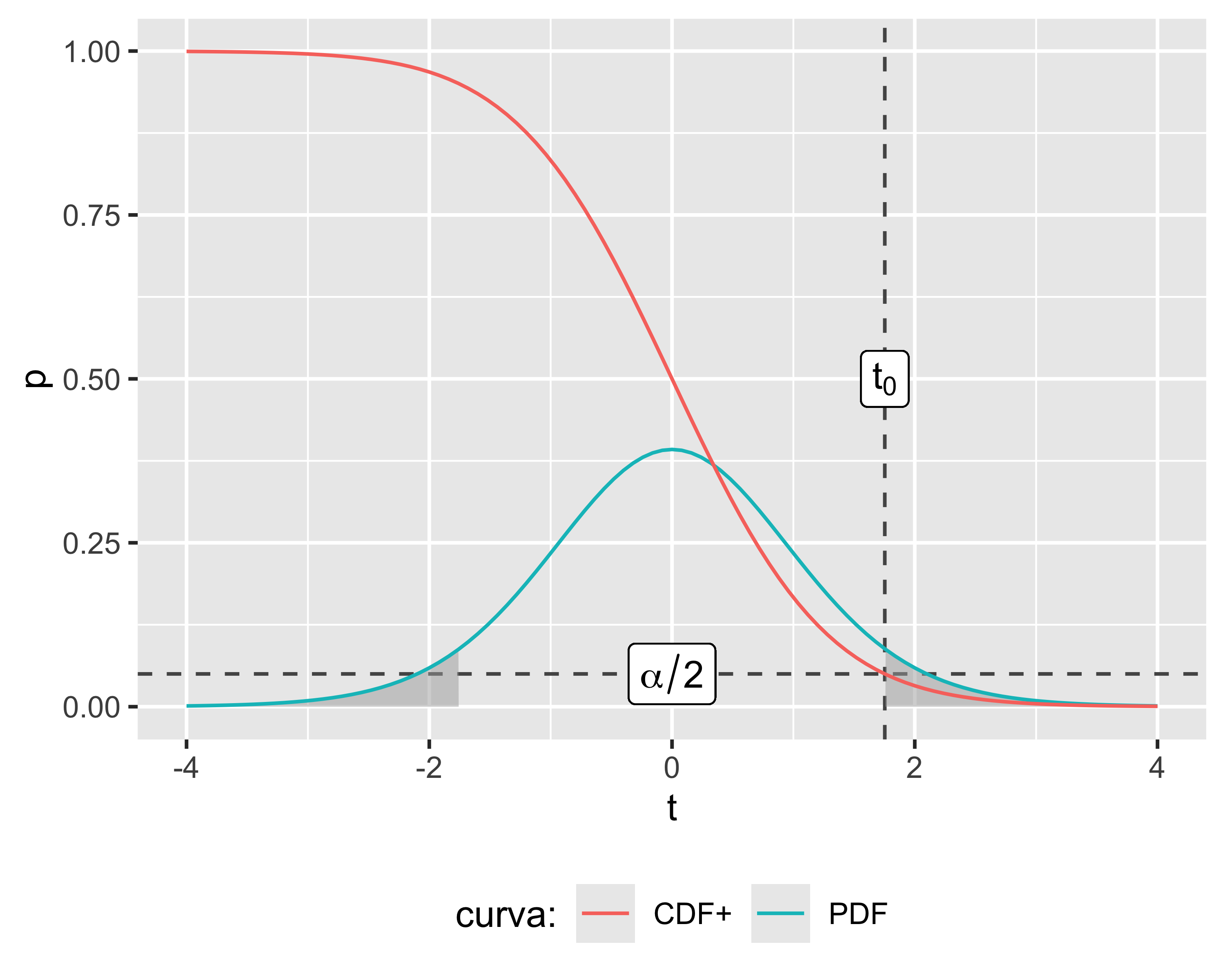 \(t_0\) è detta statistica di test e vale che \(t_0\sim t_{n_1+n_2-2}\)