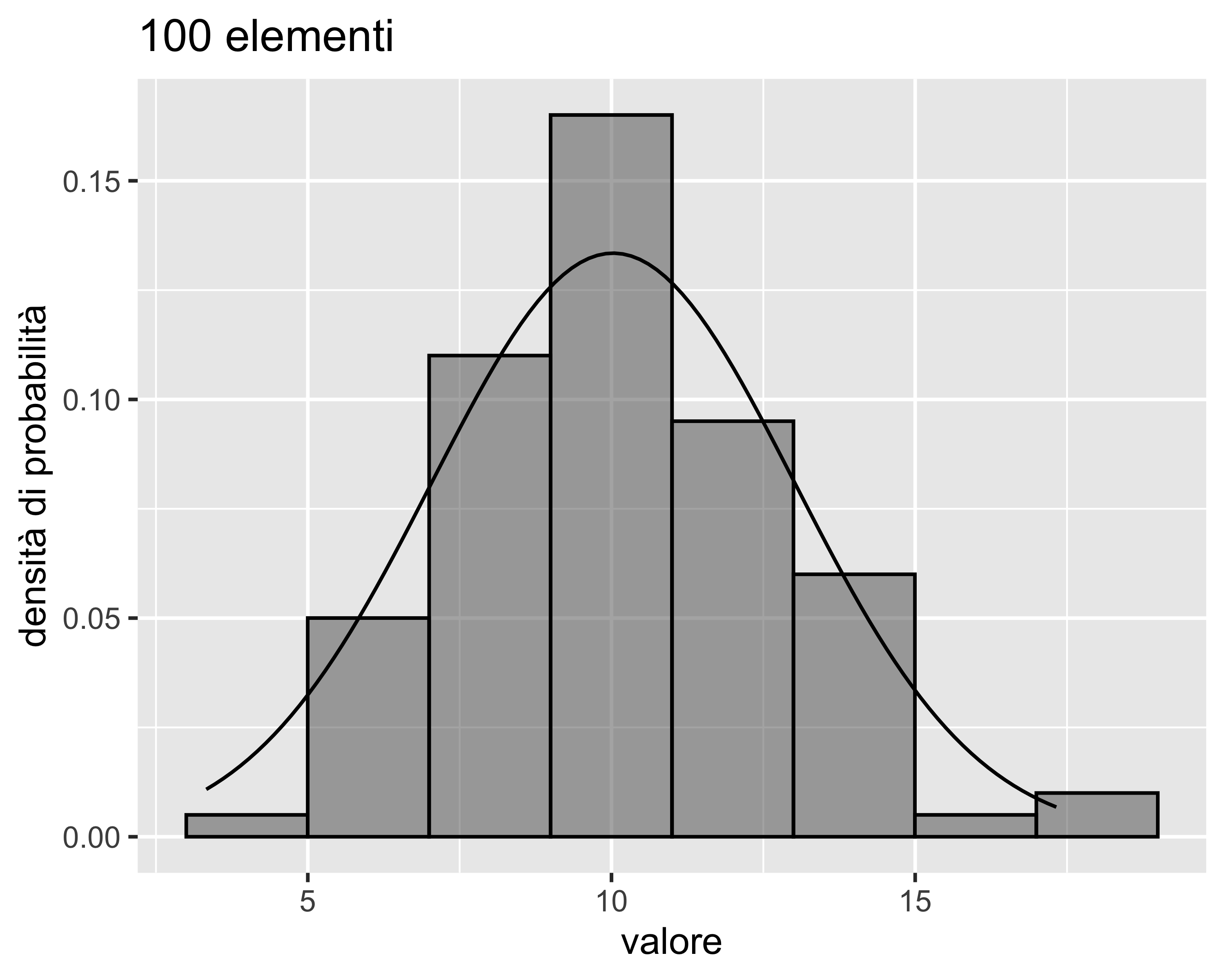 Raggruppiamo \(\left<x_1, x_2, \dots, x_n\right>\) in \(k\) classi, t.c ogni classe abbia almeno 4–5 elementi. La largezza di ciascun intervallo può essere diversa