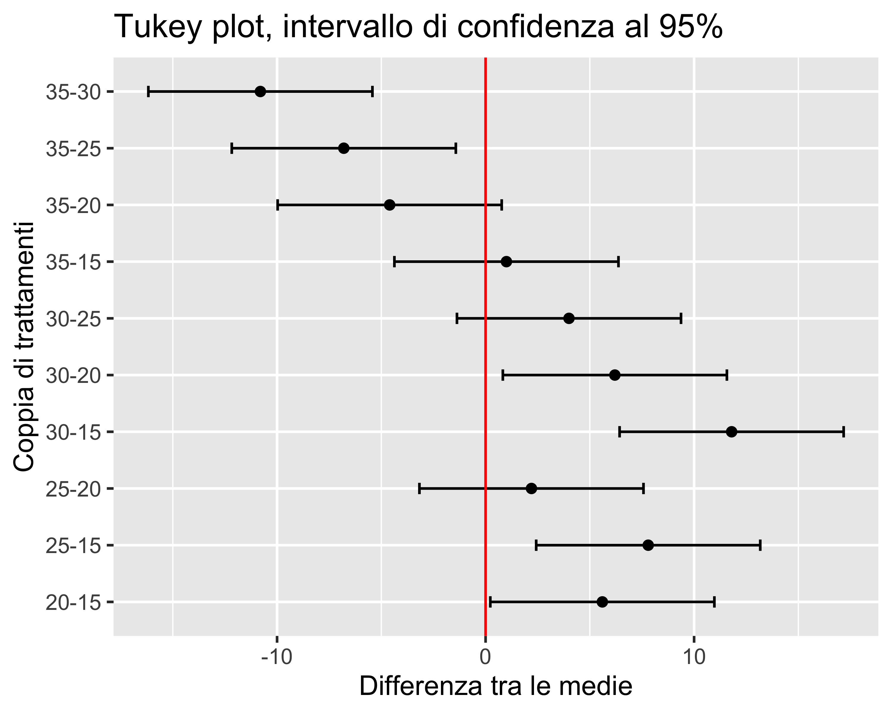 Le coppie per cui l’intervallo di confidenza è a cavallo di 0 non hanno differenze significative, e viceversa