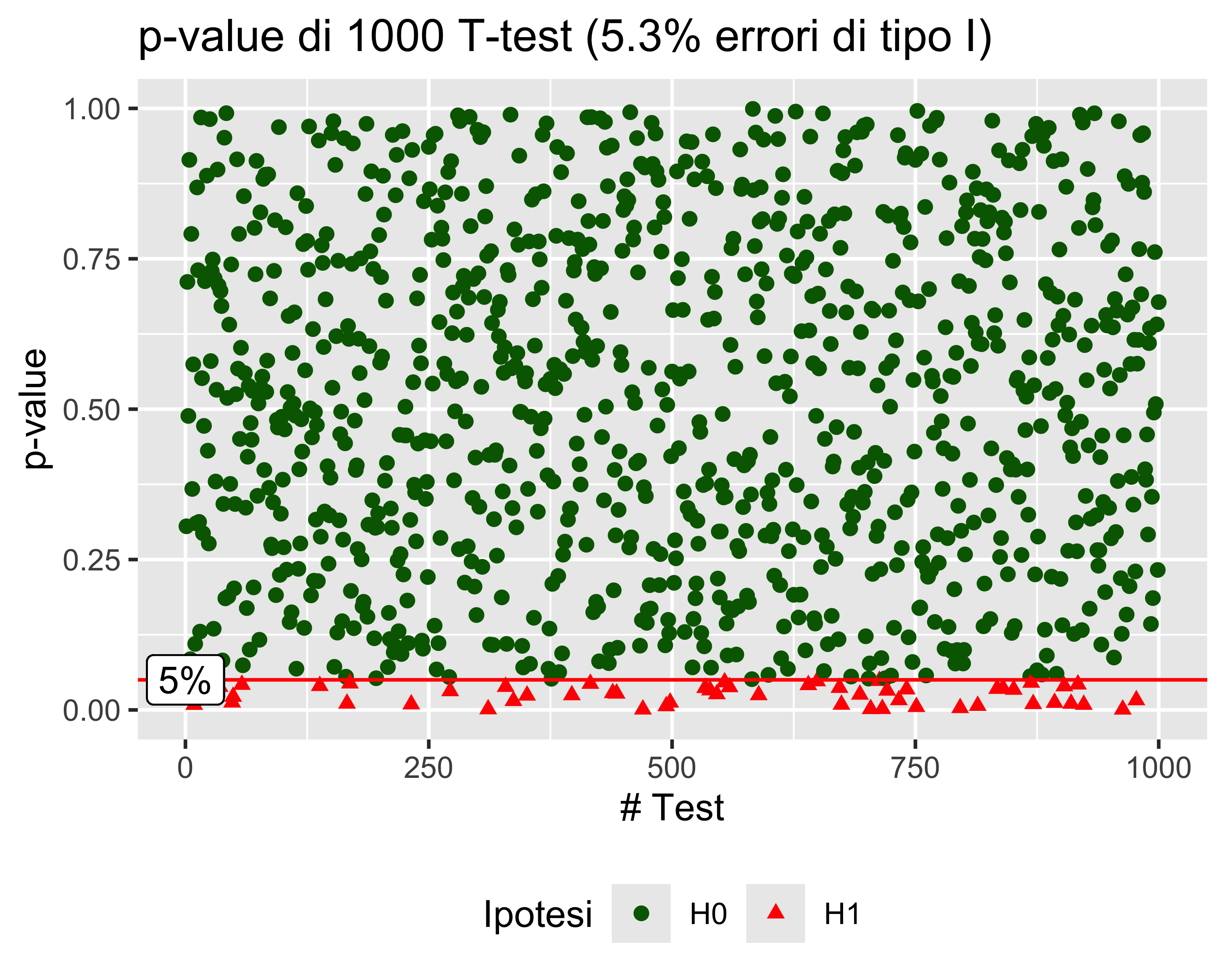 Allora il valore atteso delle predizioni errate (cioè quelle in cui vale \(H_1\)) è 5%