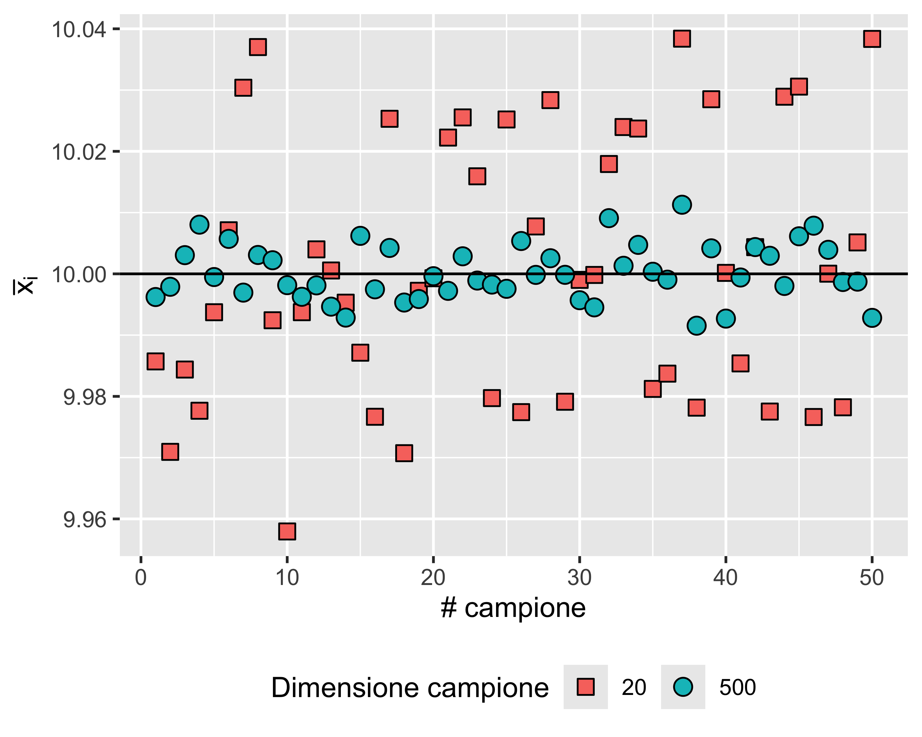 essendo estratti casualmente, i campioni approssimano la popolazione, tanto meglio quanto più sono numerosi