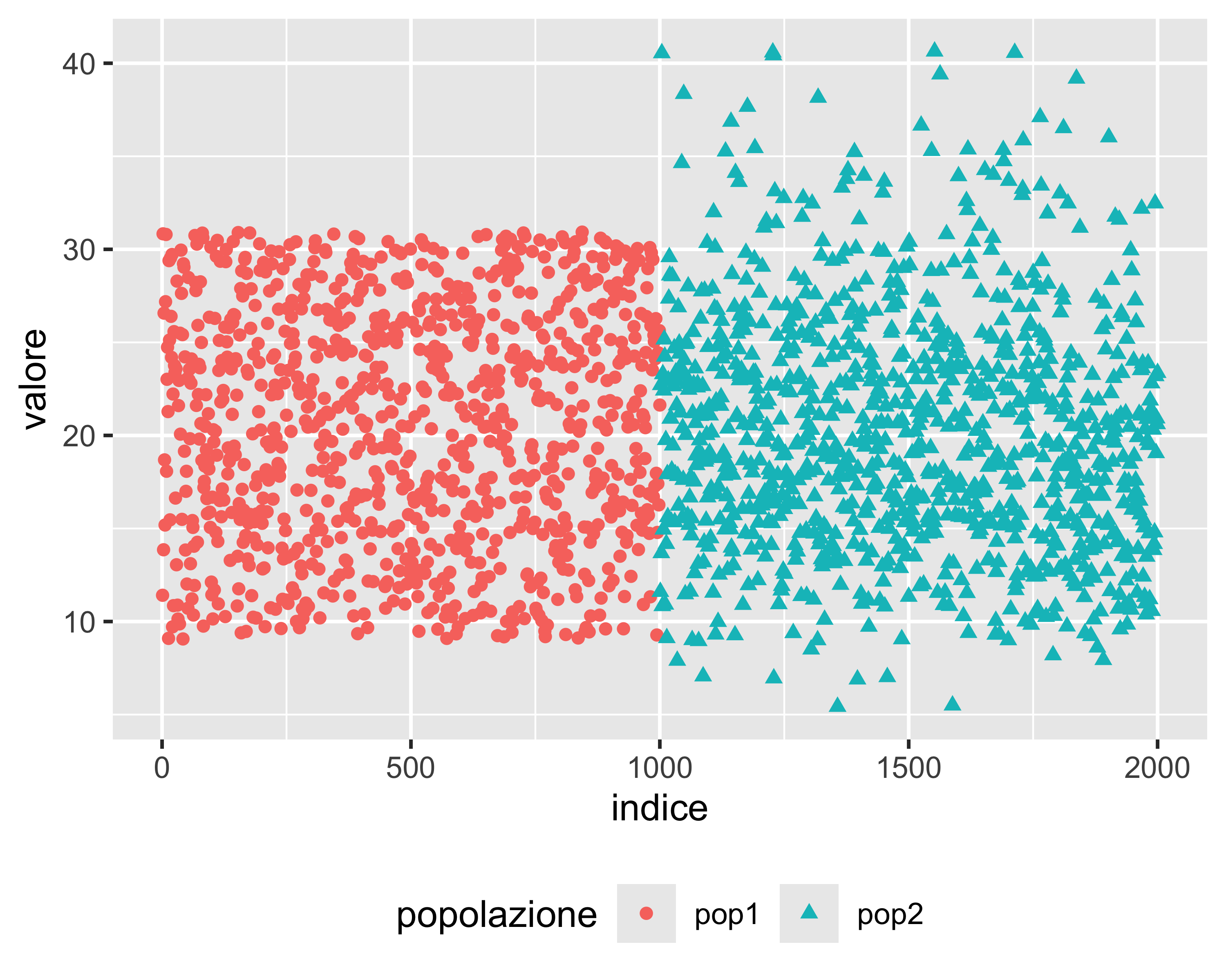 Le proprietà di una popolazione si indicano con lettere greche: \(\mu\) e \(\sigma^2\)