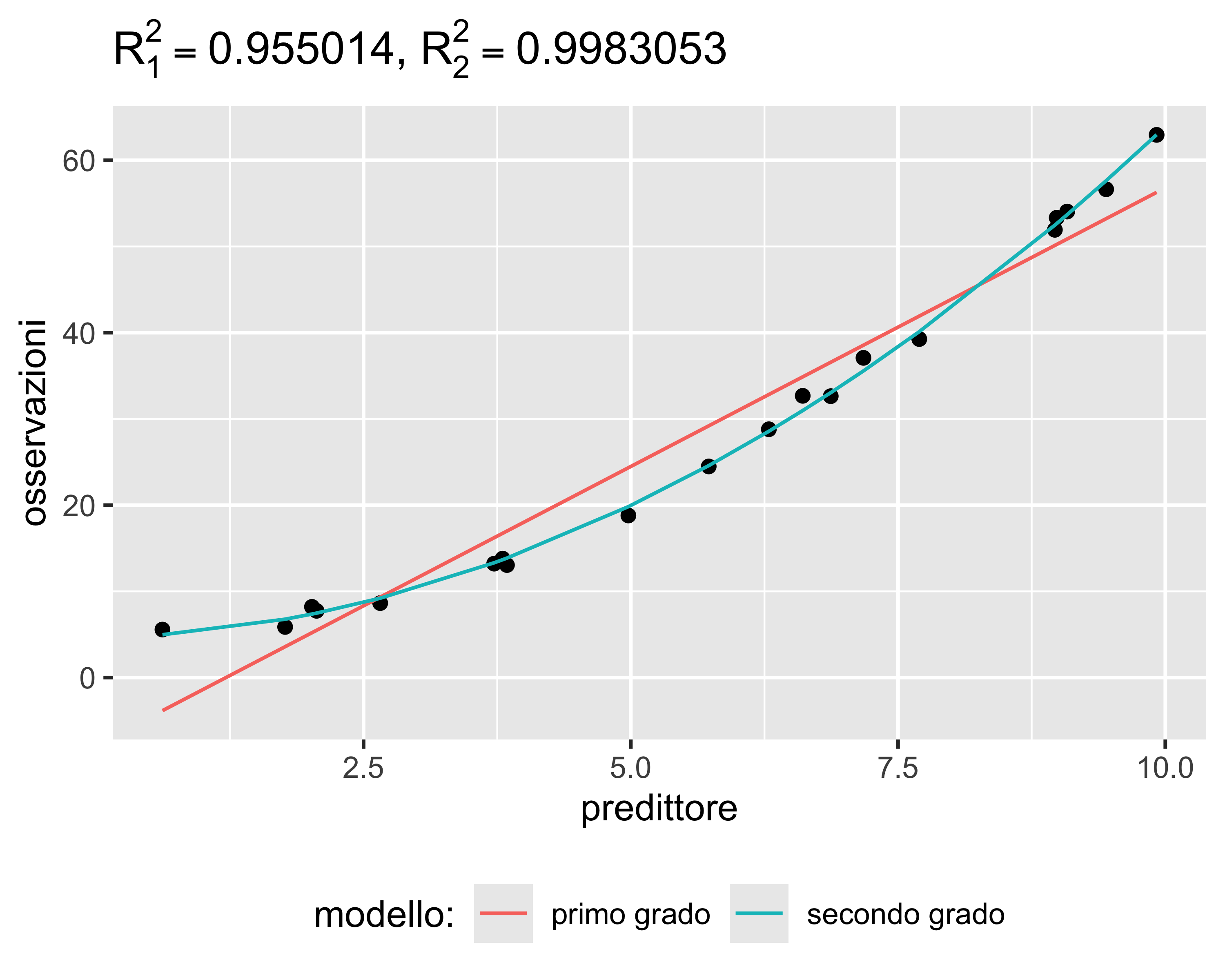Si ha sotto-adattamento (o under-fitting) quando il modello ha un grado inferiore all’apparente comportamento delle osservazioni