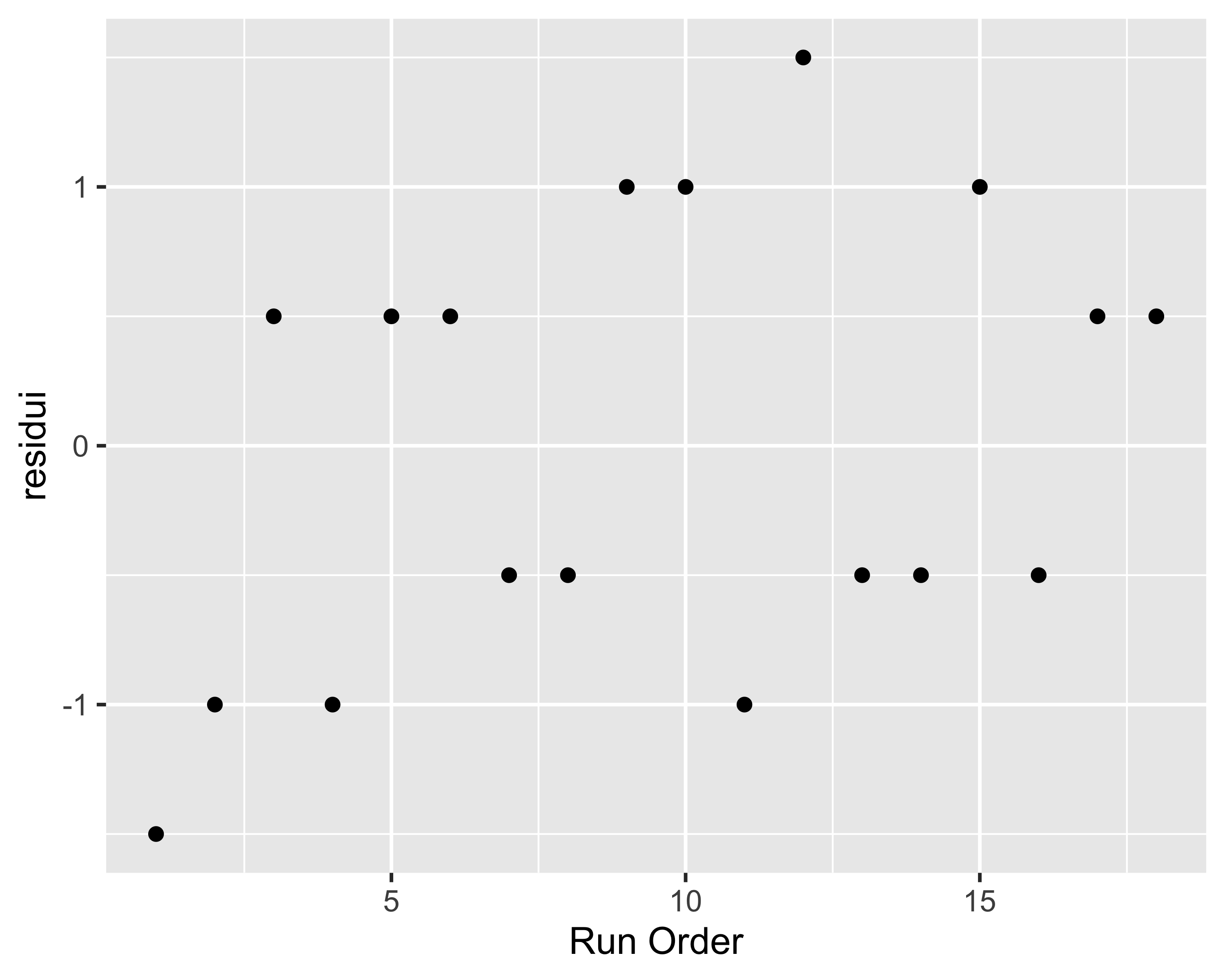 Eseguendo gli esperimenti secondo il run order eventuali effetti ignoti e incontrollati si distribuiscono casualmente su tutti i trattamenti: