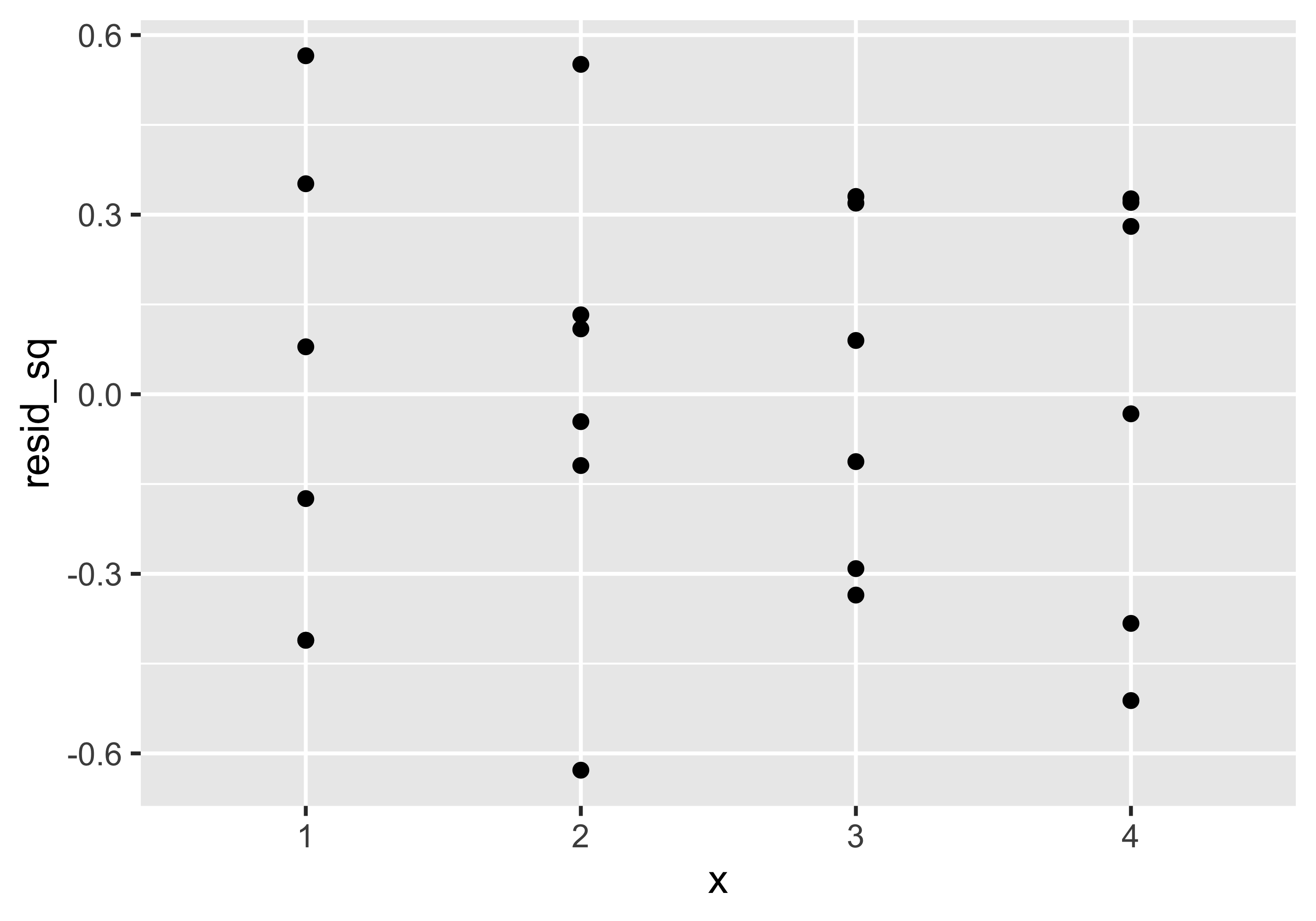 \[ y_{ij} = (\mu + x_i + \varepsilon_{ij})^2\] Il modello non sembra più lineare, ma considerando che può essere riscritto come