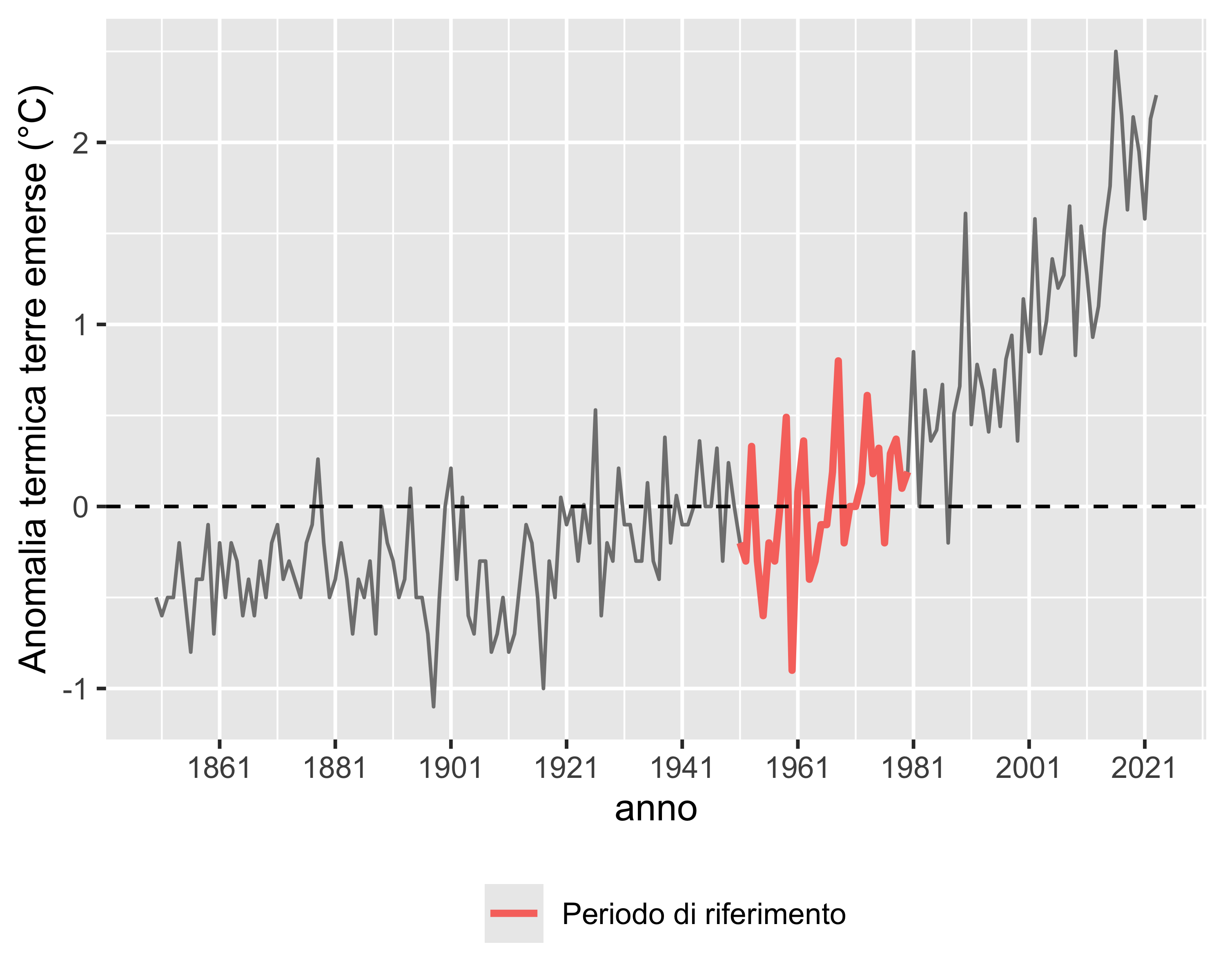 Consideriamo ad esempio la serie temporale in figura che riporta la differenza tra la temperatura media delle terre emerse e il corrispondente valore medio nel periodo 1951–1980