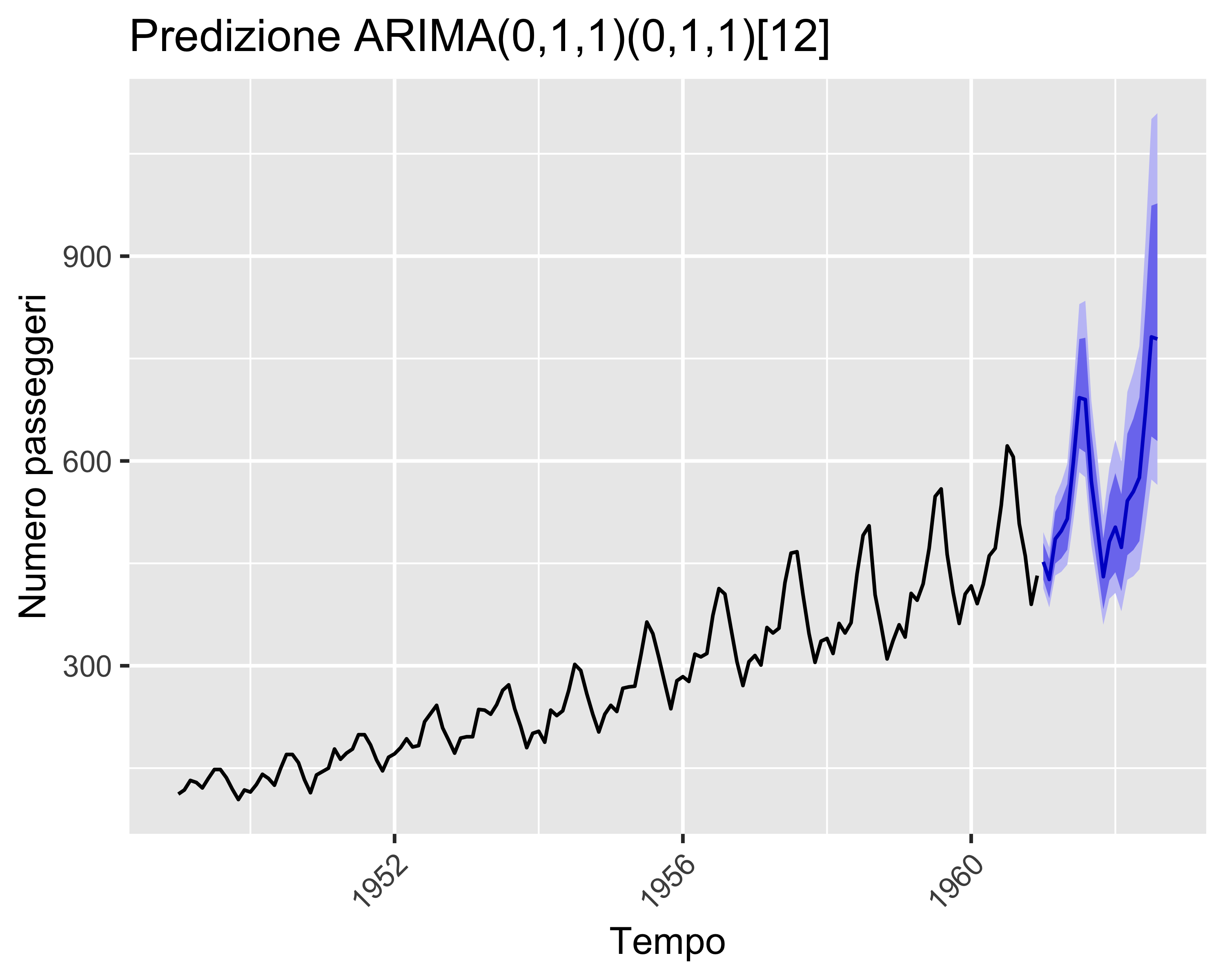 Quindi, nel caso più generale il modello è \(\mathrm{SARIMA}(p, d, q, p_s, d_s, q_s, \lambda)\)
