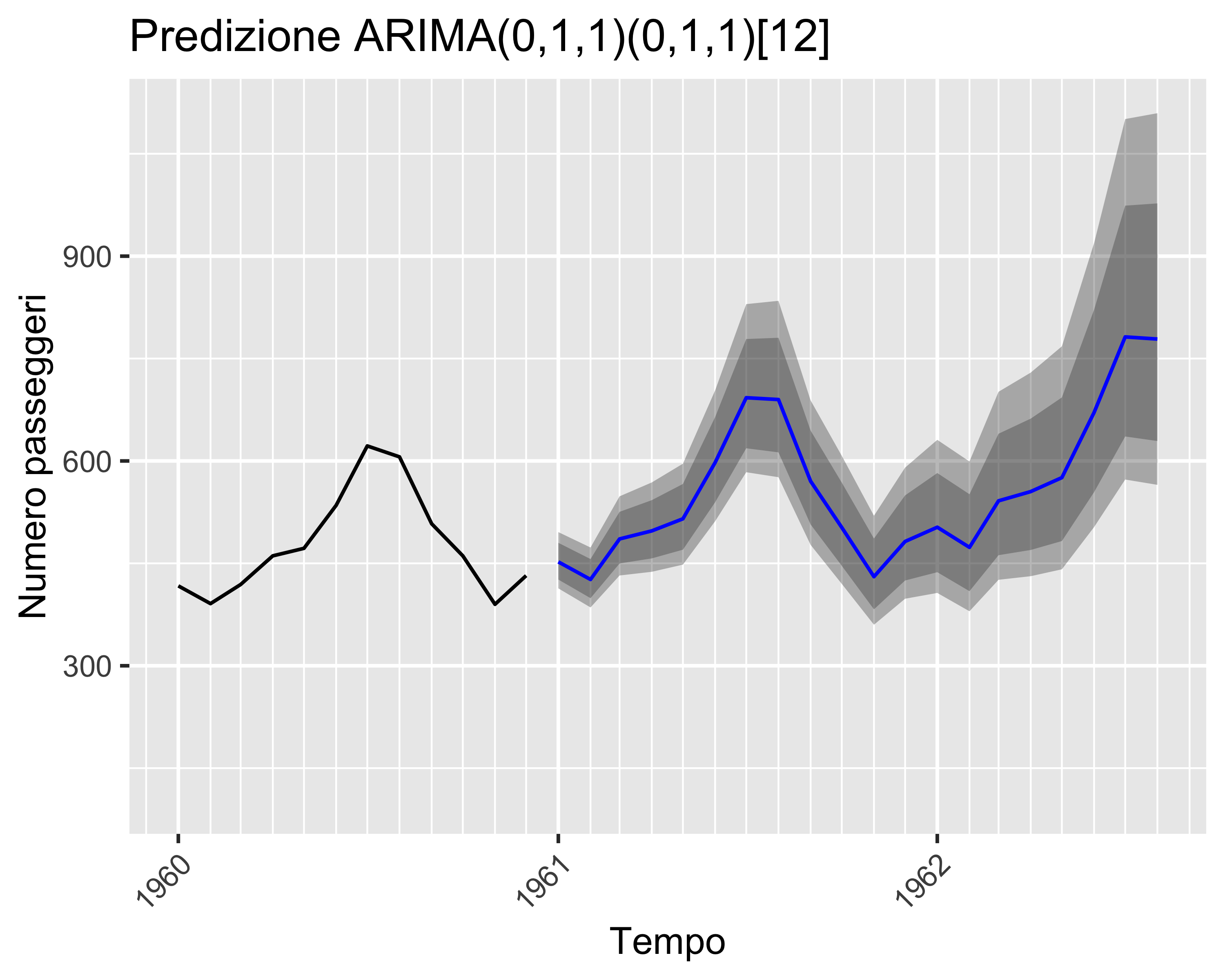 Una volta selezionato il modello più adatto (quello con AIC minimo) si può procedere a regressione e predizione