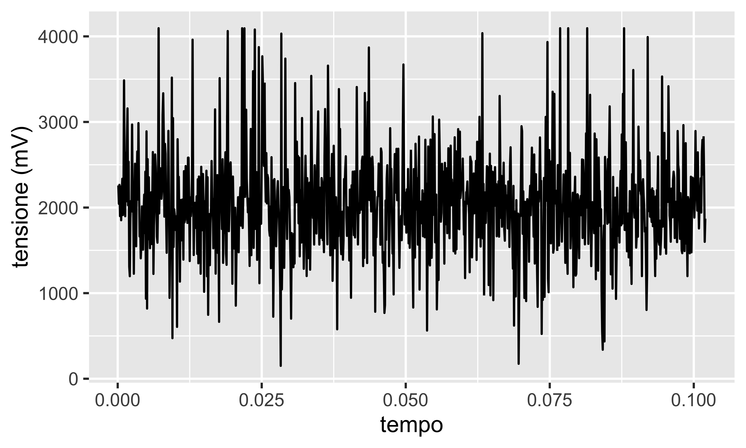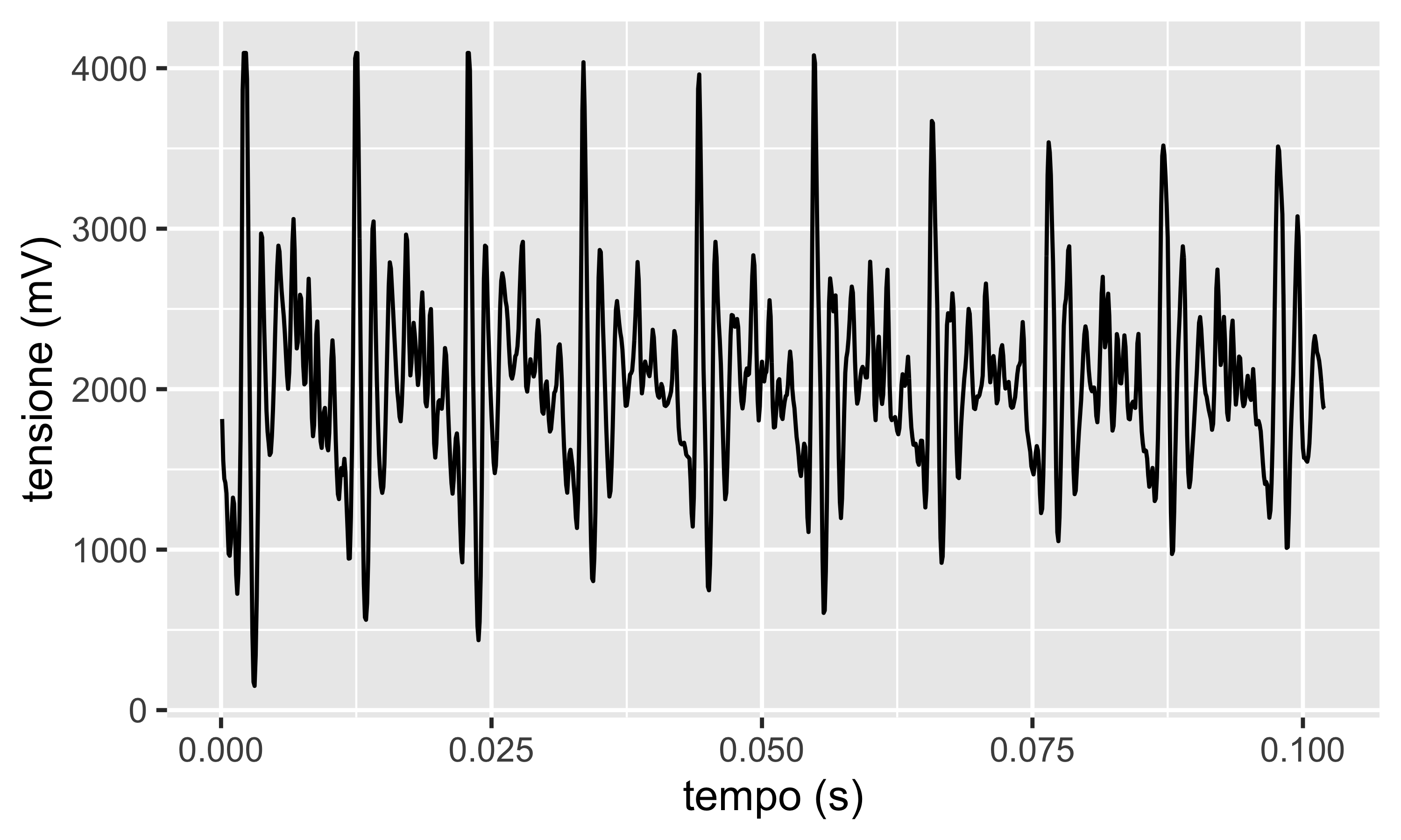 In figura il segnale di un microfono che registra il suono “AAHH”. La serie è evidentemente periodica ogni 0.01 s