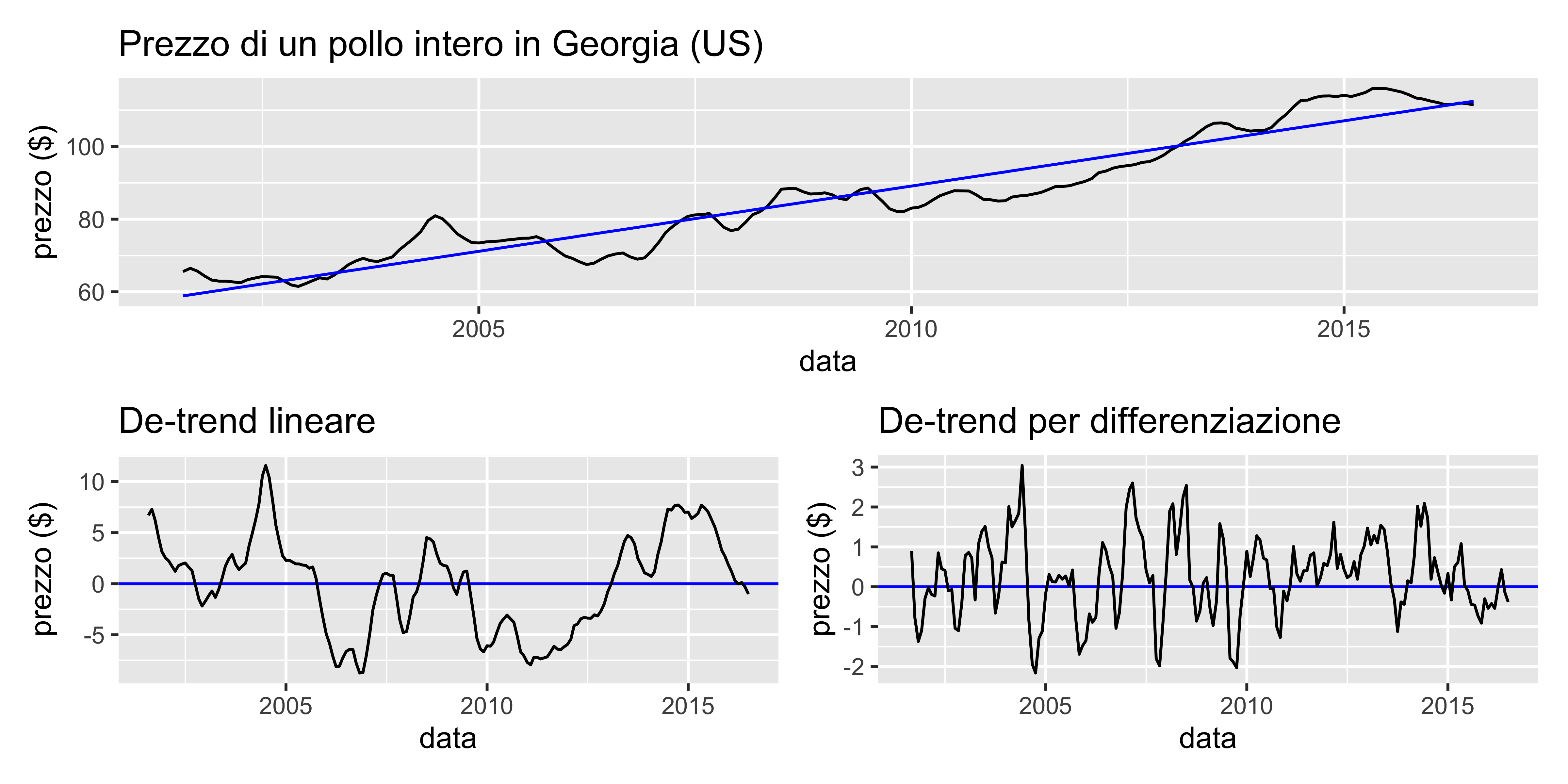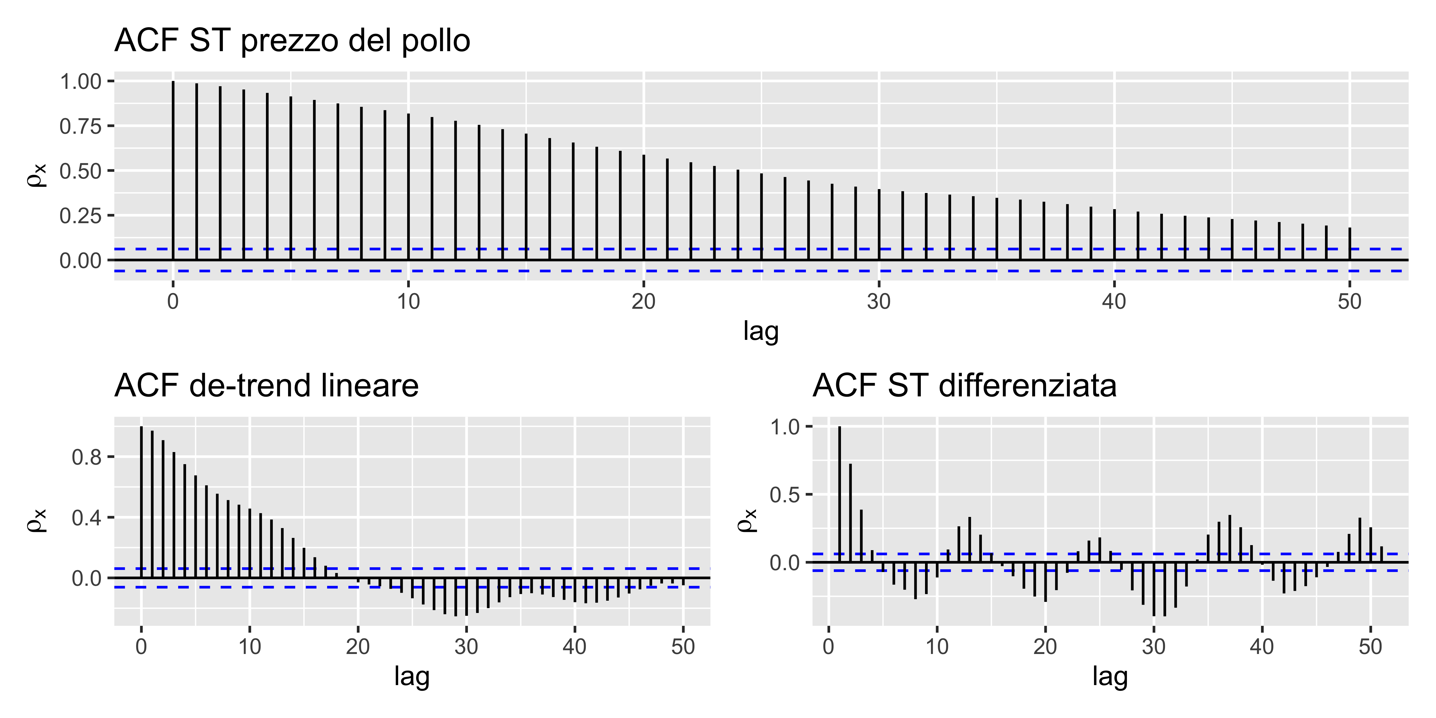 La regressione classica applicata alle serie temporali è spesso insufficiente. Ad esempio, nel caso del prezzo del pollo l’analisi della autocorrelazione mostra un comportamento ciclico che la regressione classica non riesce ad evidenziare