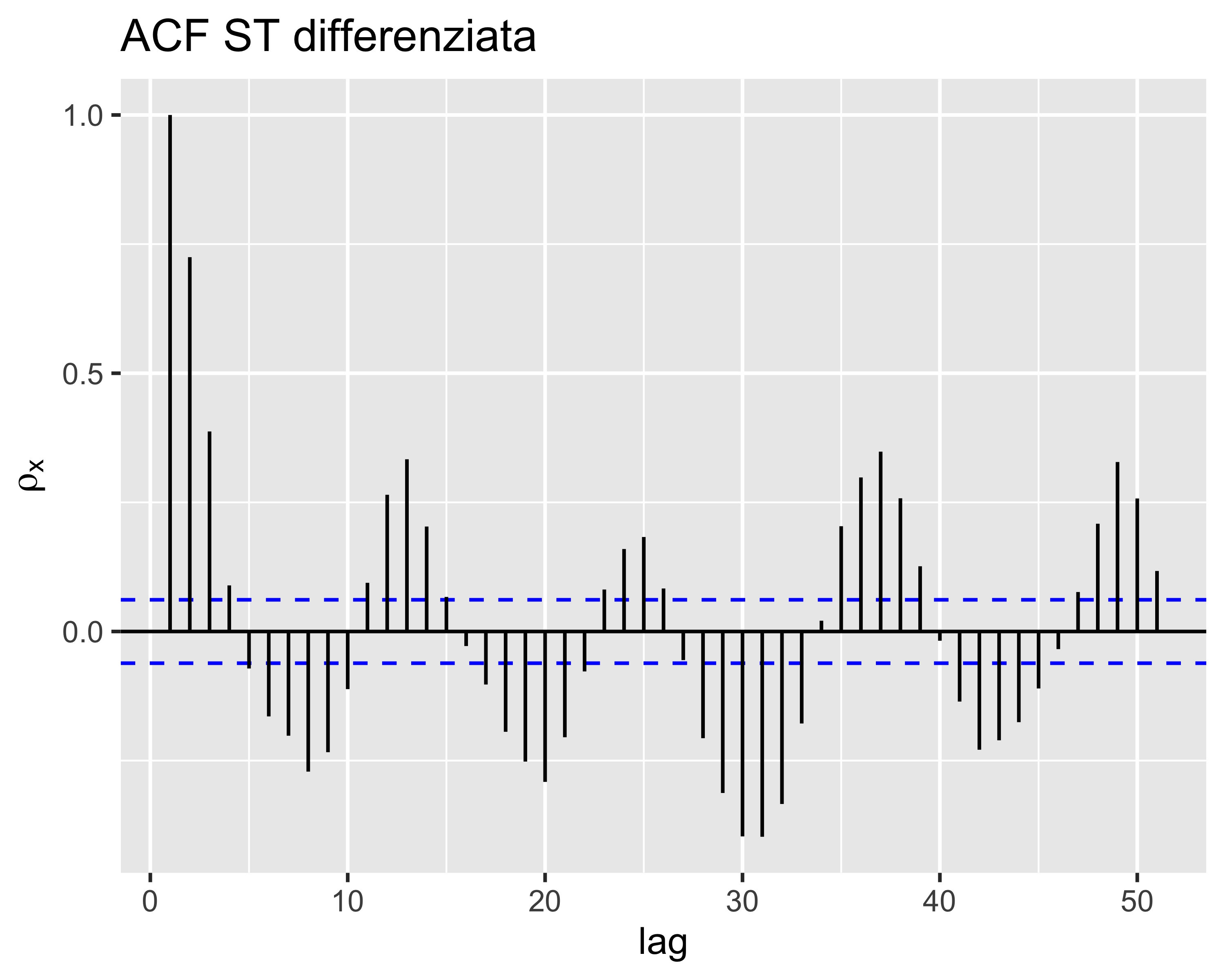 Attenzione: non si considerano i picchi dopo il primo cut-off, cioè il lag in corrispondenza del quale l’autocorrelazione scende sotto il limite di confidenza per la prima volta