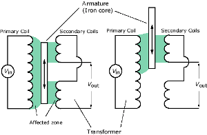 Linear Variable Differential Transformer: sfrutta la differenza tra due avvolgimenti secondari per movimenti opposti del core: